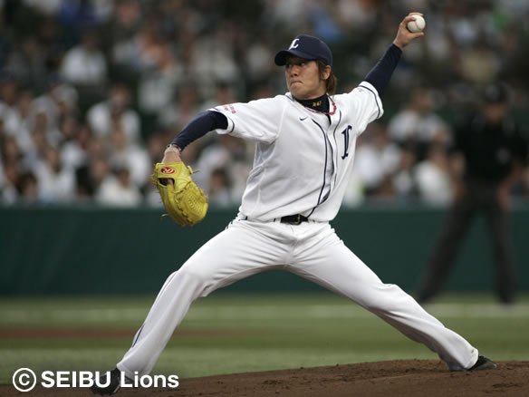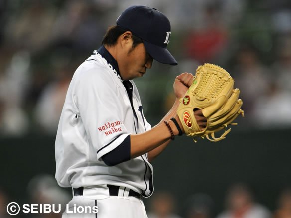 投手 帆足 7番 亀井 遊安 2-2からアウトコース低めの変化球で打ち取った当たりとしたが、打球は高くバウンドしてピッチャー・帆足の頭上を越えた。ショート・中島が前進してきて2塁ベース手前で捕球したが、1塁へは投げられず。記録は内野安打。 |