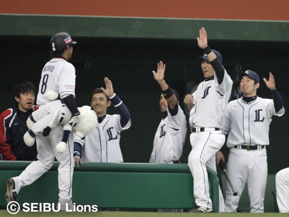 一打勝ち越しの場面で登板したルーキー・野上でしたが、小笠原から空振り三振を奪ってチームを救いました! これで試合の流れはライオンズに傾いたはず! 最終回、クリーンアップからの攻撃で劇的なサヨナラ勝利をつかみ取る!! |
