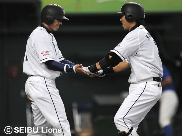 6番 ブラゼル 一ゴ 2-2から変化球を引っ張られたが、ファースト・平尾がおさえて1塁ベースカバーのピッチャー・涌井にトスし、アウト。 |