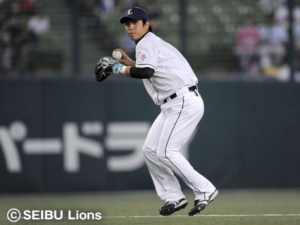 投手 涌井 2番 赤星 遊ゴ失 1-1から低めのボールを叩きつけられ、打球は三遊間へ転がった。ショート・中島がおさえたが、ボールをつかみきれずにこぼしてしまった。記録は中島のエラー。 |