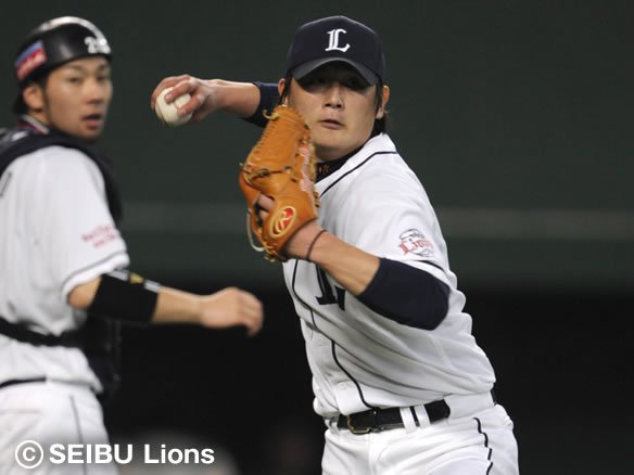投手 涌井 1番 平野恵 左飛 プレーボール直後、初球のアウトコース寄りのボールを狙われたが、打球はレフト・栗山の正面! |