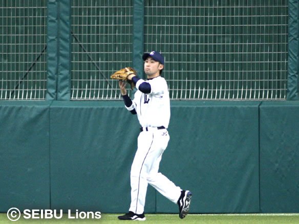 6番 喜田剛 右飛 2-0からアウトコース低めのボールを叩かれたが、ライト・G.G.佐藤が右中間の真ん中でキャッチ! |
