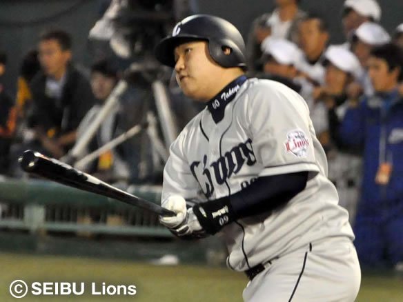 投手 高橋尚 5番 G.G.佐藤 セカンドゴロ 1-0から高めに浮いた変化球を打ち損じてしまい、前進してきたセカンド・木村拓にランニングスローで処理された。 |