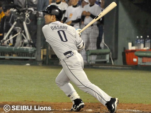 2番 栗山 一ゴ 2-0から引っ張ったが、ファースト・小笠原におさえられ、小笠原が自ら1塁ベースを踏んでアウト。 |
