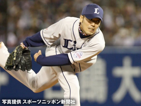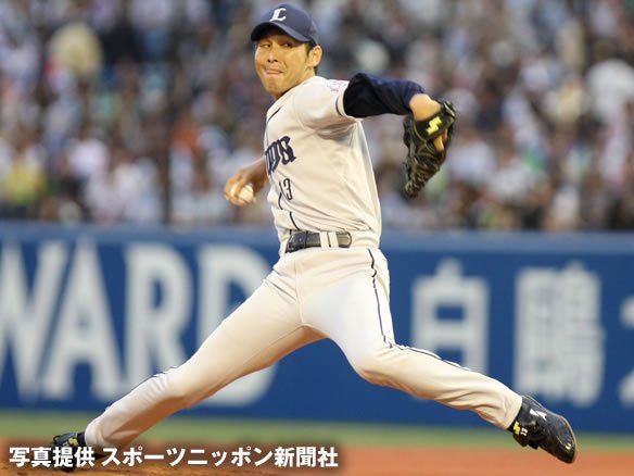 投手 西口 2番 田中浩 右飛 1-1から高めの変化球を打ち上げさせ、ライト・G.G.佐藤がライト線寄りに寄ったところでキャッチ。 |