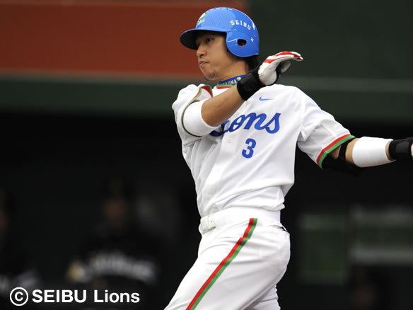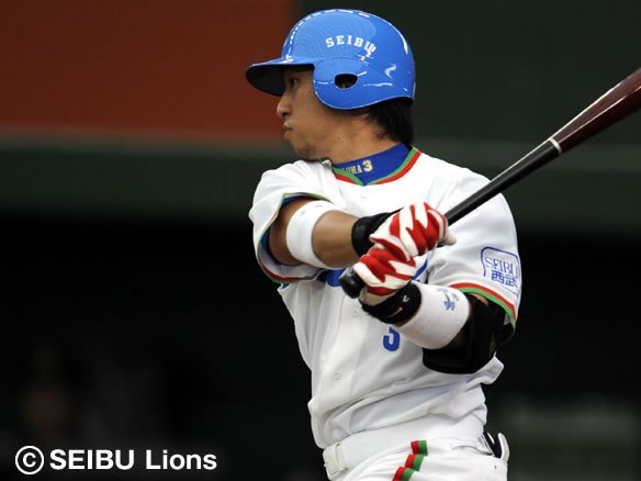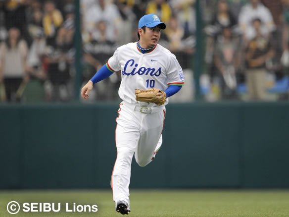 2番 栗山 右飛 2-1から高めに浮いた変化球を力強く叩いたが、ライト・多村に正面を向いておさえられてしまった。 |