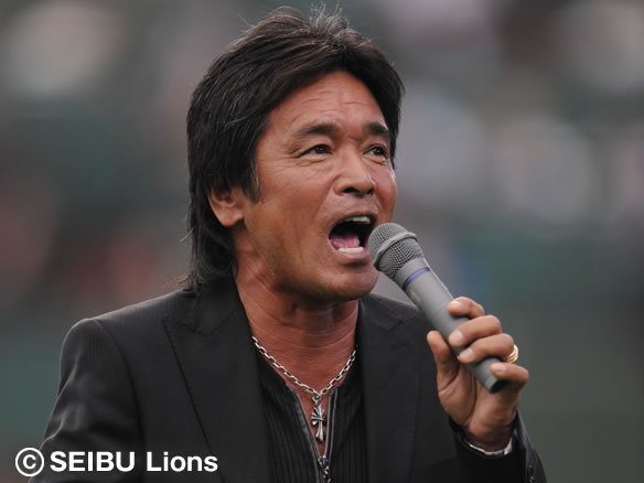5回終了後に球団歌を熱唱する松崎しげるさん