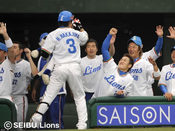 3番 中島 左中本 0-2から高めのストレートを鋭く振り抜き、打球は高々とキレイな放物線を描いてライオンズファンの待つレフトスタンドへと吸い込まれていった! 中島の今季11号2ランで、2対0! 先制に成功! ![]() 2