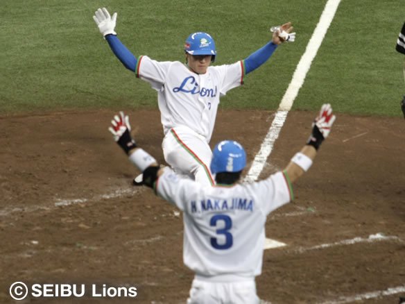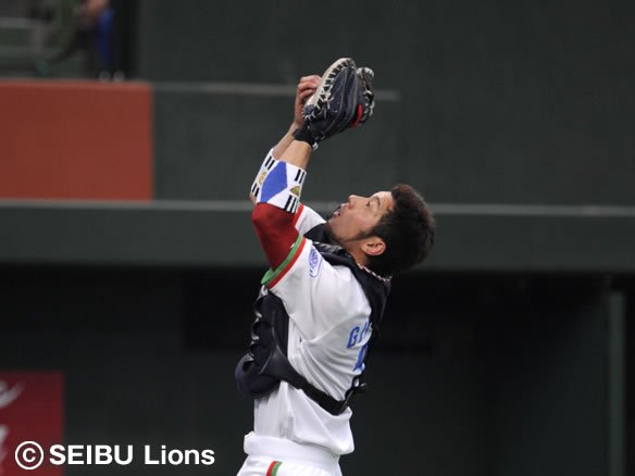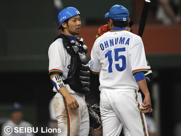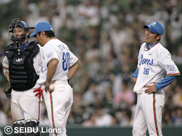 オーティズにポール直撃の一発を浴びてしまいましたが、後続をダブルプレーに仕留め、何とか試合の流れをライオンズにとどめました。再び攻勢に出て、ホークスを突き放していきたい! |