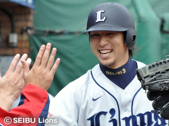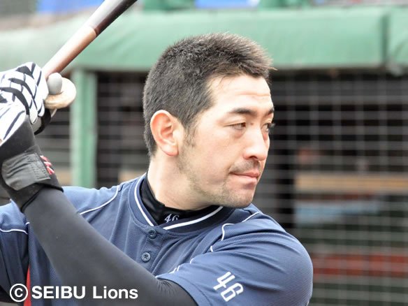 投手 永井 6番 G.G.佐藤 左安 0-1からアウトコースの変化球を引っ張り、しぶとく三遊間を破った! |