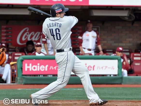 先頭打者のG.G.佐藤がレフト前ヒットで出塁