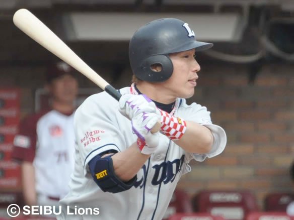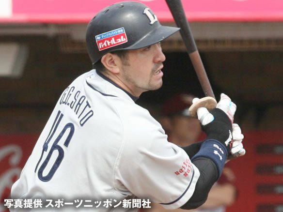6番 G.G.佐藤 中安 0-1からアウトコースのストレートを弾き返し、打球は二遊間を破っていった! 片岡に続き、G.G.佐藤も今日3安打猛打賞! |