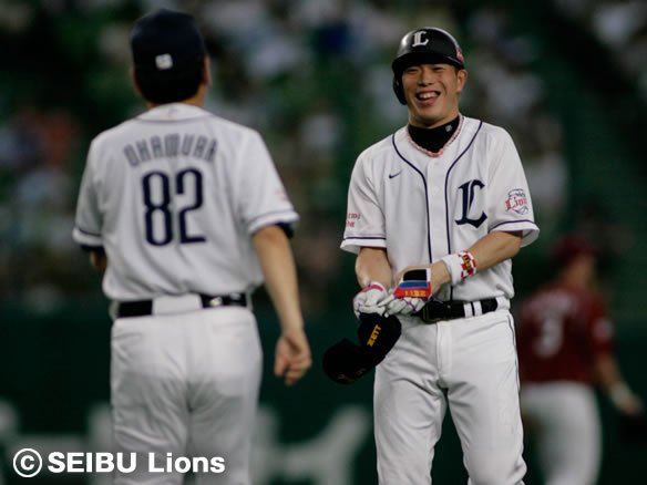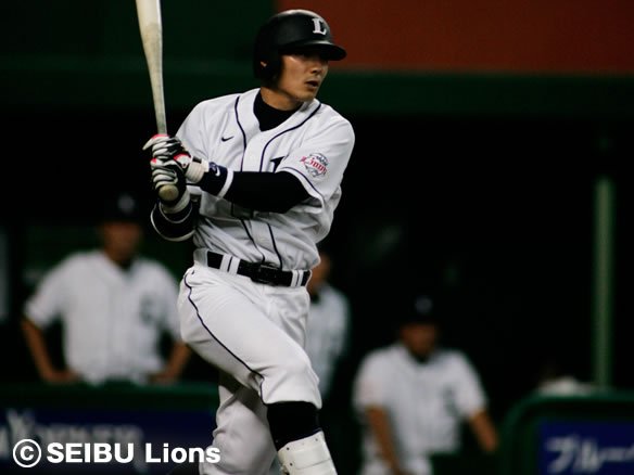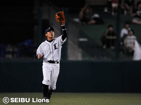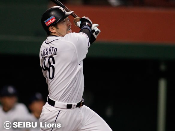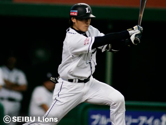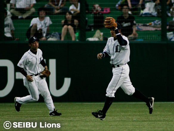 6番 G.G.佐藤 右飛 フルカウントからアウトコースの抜いた変化球を逆らわずに右方向に弾き返したが、ライト・中村真に素早く落下点に入られ、ゆっくりとおさえられた。 |