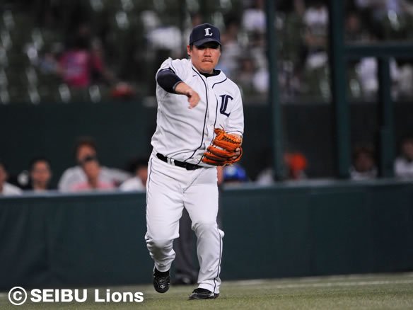 8番 平石 中飛 2-1からの6球目、高めのストレートを打ち上げさせた。センター・栗山が左中間方向に寄っていって捕球。2塁ランナー・セギノールはタッチアップのそぶりを見せるのみ。 |