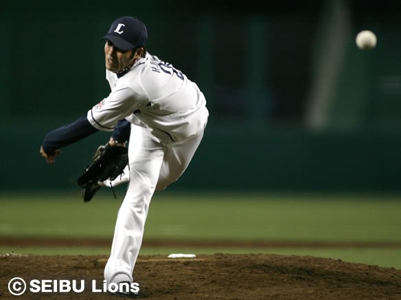 投手 西口 6番 セギノール 四球 フルカウントからインコース低めを突いたスライダーがわずかに外れてしまった。 |