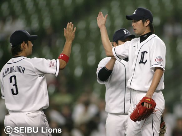 投手 涌井 1番 坂口 一ゴ 2-1から低めのフォークに手を出させ、ファースト・石井義が正面でおさえてそのまま自ら1塁ベースを踏んでアウト。 |