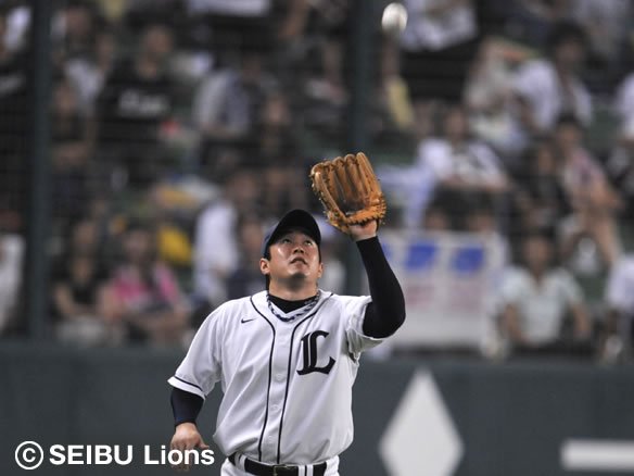 4番 カブレラ 左飛 1-0からの変化球を高々と打ち上げさせ、レフト・佐藤が左中間寄りの深いところでおさえた。2塁ランナーのフェルナンデスはタッチアップで3塁を狙い、セーフ。 |