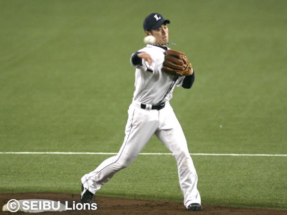 8番 鈴木 遊ゴ 0-1から低めのストレートを鋭く弾き返されたが、ショート・中島がこれをおさえて1塁へ踏ん張って送球し、アウト。 |