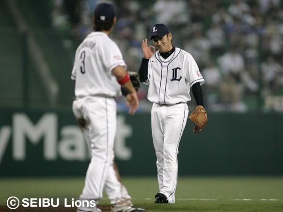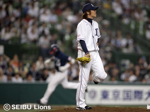 力投を続けてきた帆足は、ここでマウンドをリリーフに託します。7回を投げて102球、被安打7、奪三振4、与四球1、失点2という内容でした! そして、ついにタイガースから移籍してきた藤田がライオンズ移籍後初登板を果たします! |
