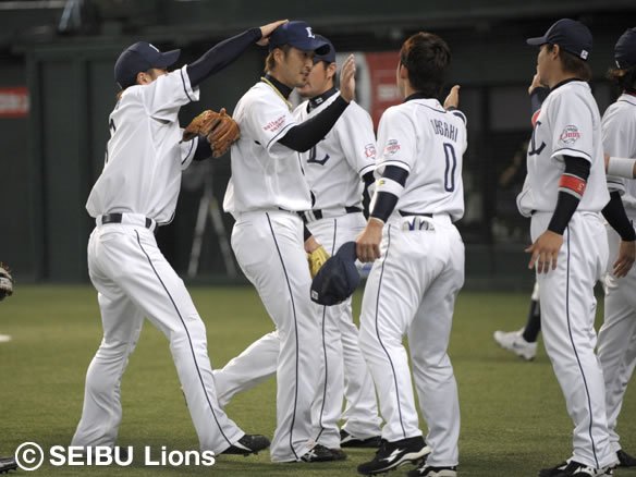 ライオンズデビュー戦を3者凡退で仕留めチームメイトとハイタッチ!!