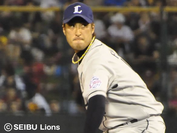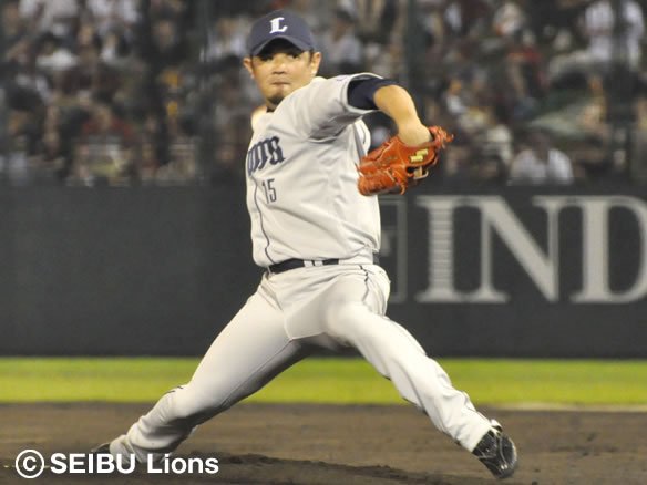 投手 石井一 投手 石井 4番 山崎 中飛 1-1から高めの変化球を打ち上げさせた。ライト・G.G.佐藤が捕球体勢に入ったが、最後はセンター・栗山が右中間の真ん中でキャッチ。 |