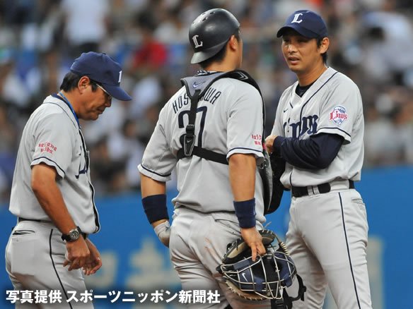 投手 星野 投手 山本淳 【埼玉西武選手交代】 ピッチャー・星野→山本淳 代打・上本→キャッチャー |