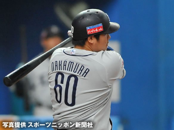 4番・中村が今日も爆発! 小松の失投を逃さず、見事な一発で同点に追いつきました! 次のバファローズの攻撃をキッチリとねじ伏せ、最後の攻撃で一気に勝ち越しを果たしたい! |