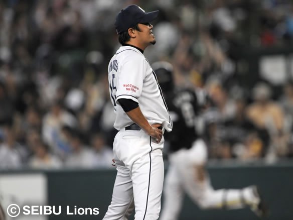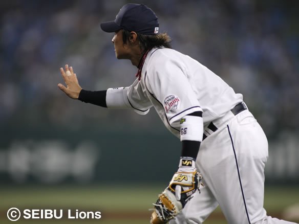 3番 松中 中飛 1-0からの変化球を左中間に弾き返されたが、センター・栗山が素早く左中間方向に駆けていってランニングキャッチ。 |