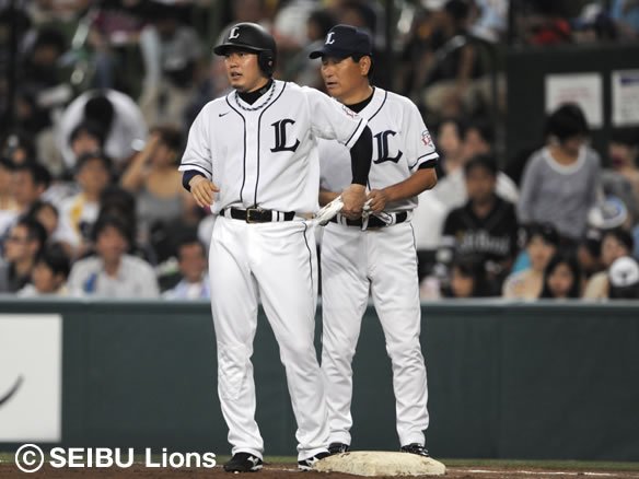 ランナーを得点圏に置いての登板となった2番手・大沼でしたが、川崎、松中と連続三振に仕留める素晴らしいピッチングを披露! 一気に試合の流れをライオンズに傾けました!! さあ、ここを逃すことなく一気に攻勢に出て、勝ち越しを果たす! |