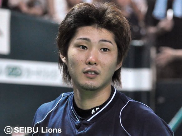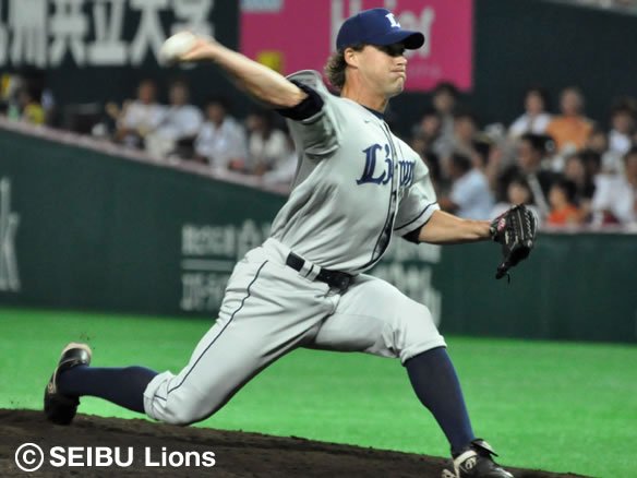 投手 大場 6番 G.G.佐藤 死球 0-1からのフォークがすっぽ抜け、G.G.佐藤の左肩に直撃した。 |