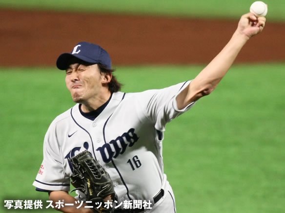 投手 石井一 投手 石井 8番 吉川 中飛 2-1からのスライダーを弾き返されたが、センター・栗山の正面に飛んだ。 |