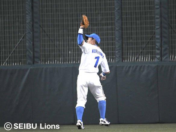 6番 ベニー 中飛 2-1から高めのストレートを打ち上げさせ、センター・栗山が素早く定位置より後方の落下点に入って捕球。 |