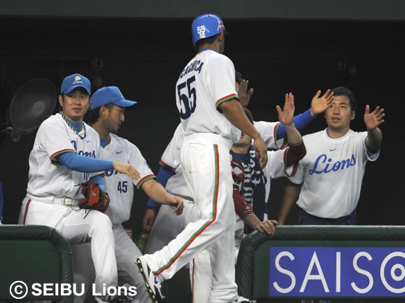 この回も得点圏に走者を背負ってしまった帆足でしたが、何とか踏ん張って無失点で終えました! さあ、今度はライオンズが猛攻を見せる番! ここから始まる獅子の大逆転劇!! |