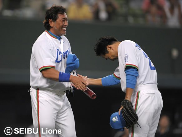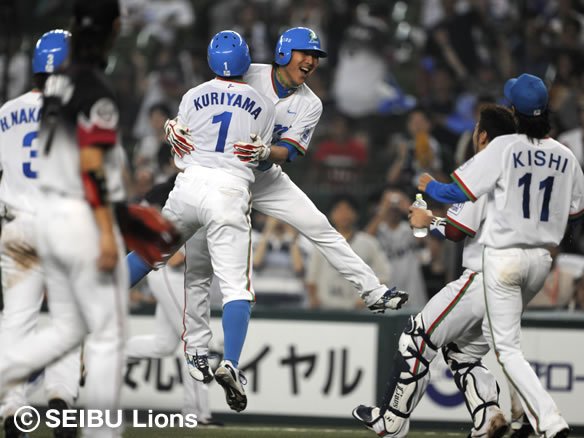 2死からフォアボールを与えてしまいましたが、ここも得点には至らせず! 岸、157球の熱投で9回を投げきりました! さあ、ここまで来たら、ライオンズファンが待ち望むのはただ一つ!! サヨナラ勝ちのみ!! |