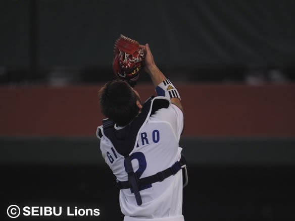 女房役・銀仁朗の好送球にも助けられ、打者3人でマリーンズの攻撃をねじ伏せました! 良い流れは作れているだけに、あとは攻撃にうまくつなげていくのみ! |