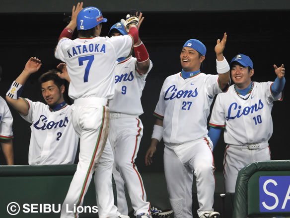 早いカウントから仕掛けていく積極的な攻撃で、ついに先制に成功! 試合の均衡をライオンズが破りました!! 大きな1点を挙げましたが、気を抜くことなくマリーンズの攻撃をねじ伏せ続け、野上に先発初白星をプレゼントしましょう!! |