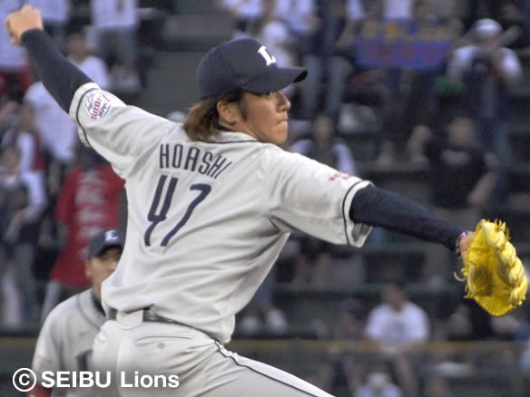 投手 帆足 6番 濱中 中飛 0-1から高めのカーブを弾き返されるが、高く上がった打球は回り込んだセンター・栗山が落ち着いて捕球した。 |