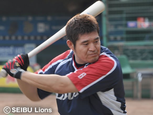 6番 G.G.佐藤 左飛 1-1から真ん中のスライダーを引っ張り、左中間に飛んだ打球は回り込んだレフト・濱中にキャッチされてしまった・・・。 |