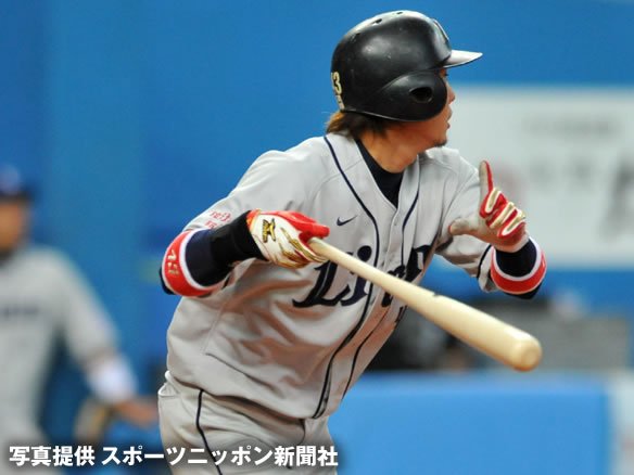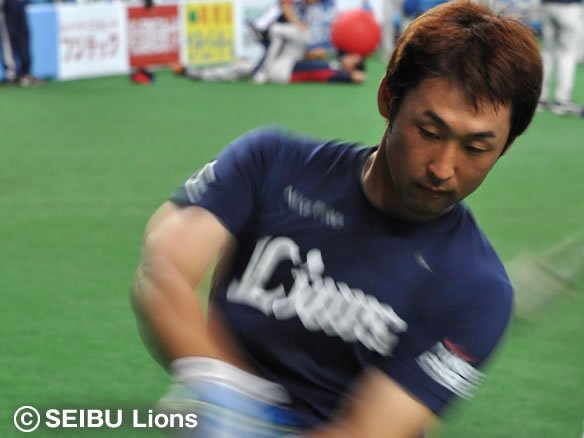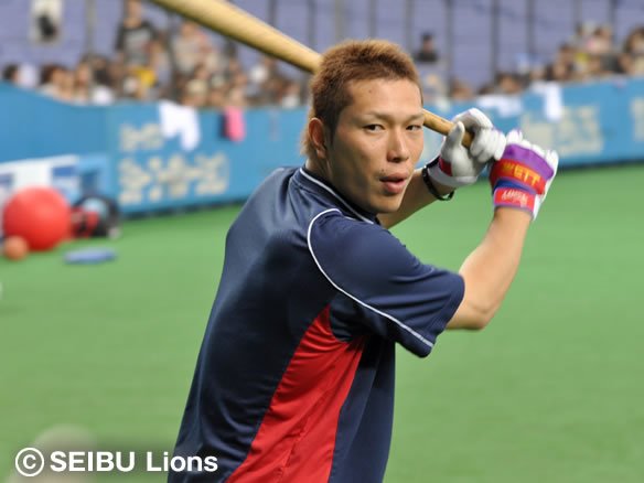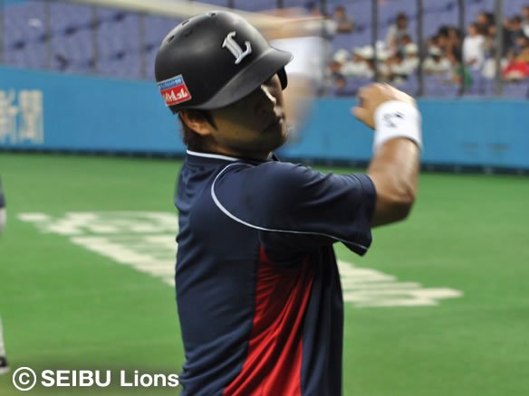 投手 金子 4番 G.G.佐藤 左飛 初球のアウトコースへのカーブを引っぱり大きなフライも、打球は失速してしまいレフト・由田が少しバックしたところでキャッチ。 |