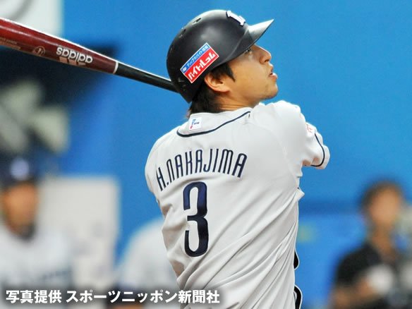 投手 岸 4番 ローズ 中安 初球のアウトコースのカーブをバットの先ながらセンター方向に打ち返され、ショート・中島が打球に飛びつくも、中島のグラブの先に当たりながらもセンターへ抜けていってしまった。 |