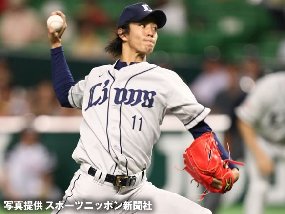 投手 岸 8番 明石 右飛 1-1からインコース低めのスライダーを打ち上げさせ、ライト・G.G.佐藤が右中間方向にゆっくりと寄っていって捕球。 |