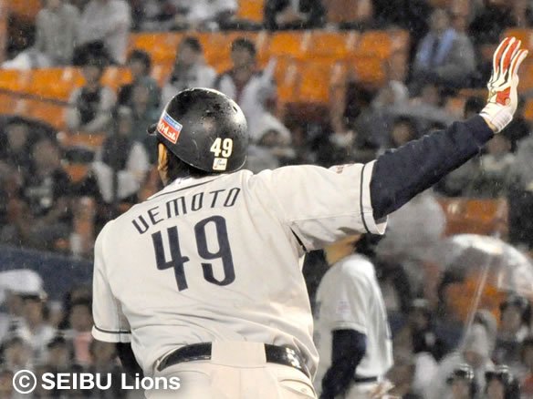 投手 大沼 投手 ベイリス 【埼玉西武選手交代】 ピッチャー・大沼→ベイリス 代打・佐藤→ライト ライト・G.G.佐藤→キャッチャー・細川 キャッチャー・上本→ファースト |