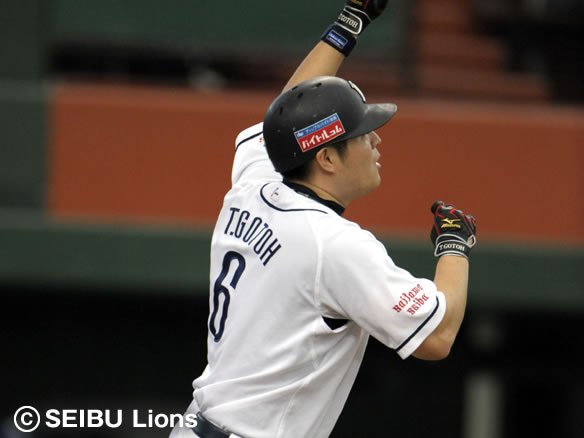 投手 ホールトン 6番 G.G.佐藤 右飛 0-2からアウトコースへのストレートを高々と打ち上げてしまい、ライト・多村に素早くライト線近くの落下点に入られ、余裕を持って捕球された。 |