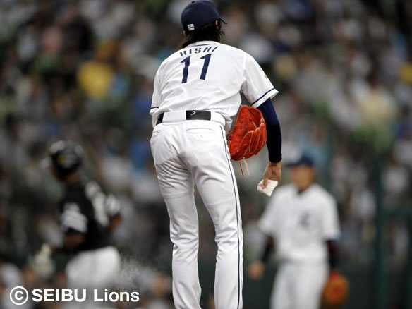 先発の岸はここでマウンドをリリーフに譲ります。6回を投げて102球、被安打6、奪三振1、与四球2、失点5という投球内容でした。 |
