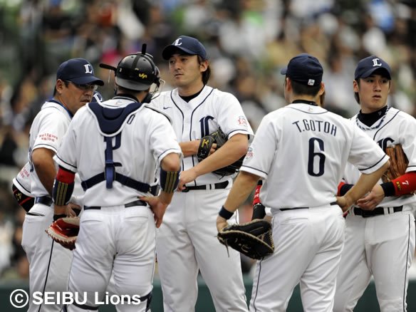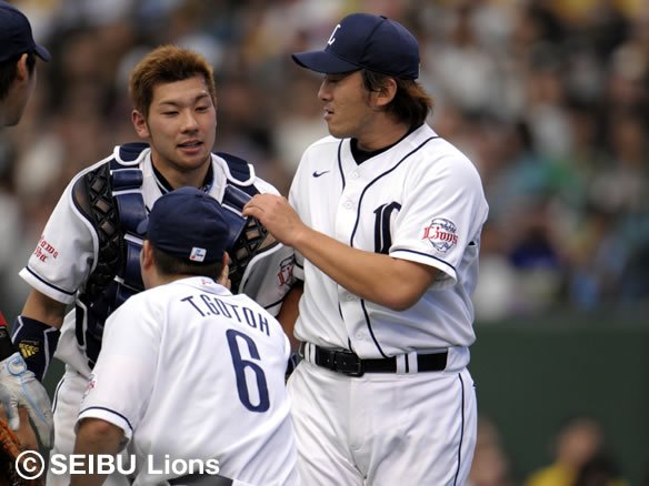 投手 石井一 投手 星野 【埼玉西武選手交代】 ピッチャー・石井一→星野 代打・石井義→ファースト ライト・G.G.佐藤→赤田 |