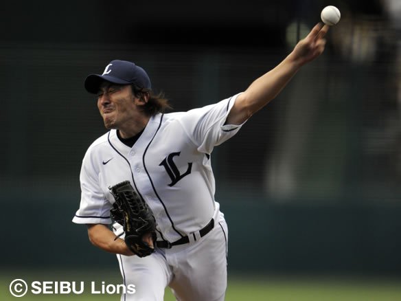 投手 石井一 投手 石井 3番 オーティズ 空三振 2-2から低めへのスライダーにバットをかすらせず! |