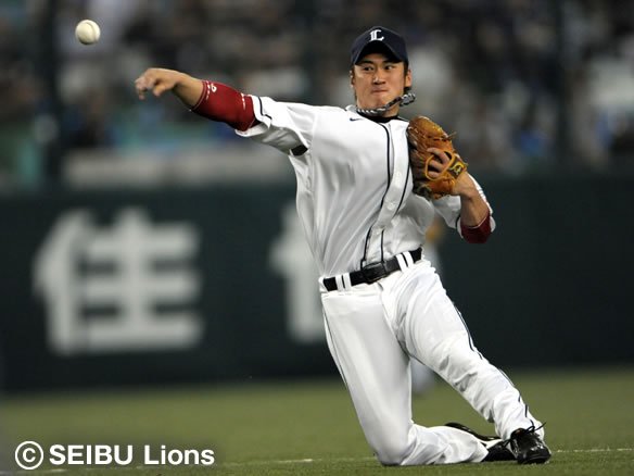 6番 セギノール 遊ゴ 1-2から低めのパームボールを打ち損じさせ、打球は二遊間へ。これをショート・中島が2塁ベース寄りで正面に回り込んで丁寧に処理! |