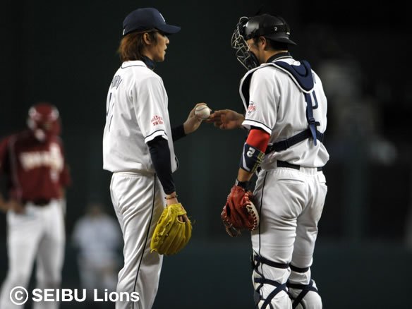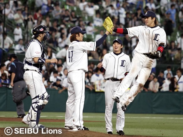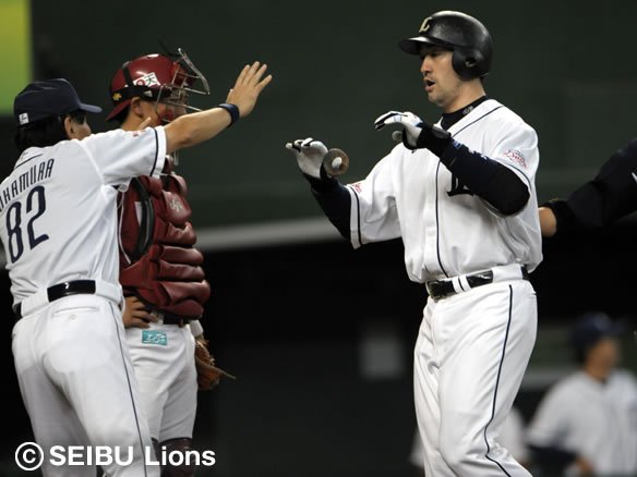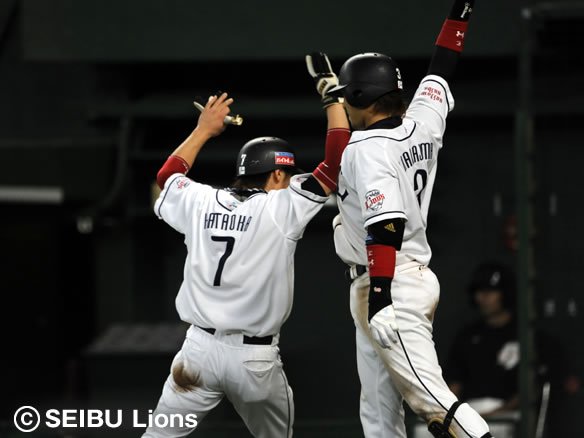 栗山の貴重なタイムリーが飛び出し、終盤で大きな2点を追加しました! 最終回のマウンドにも、帆足が5試合連続完投、そして4試合連続完投勝利を懸けて上がります! これをチーム一丸となってアシストし、白星を気持ち良くつかみ取りましょう!! |