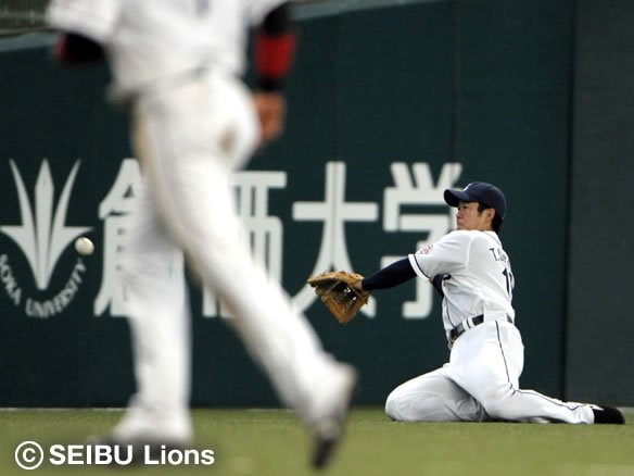 8番 草野 左安 1-3からアウトコースへのストレートをレフト方向に流し打たれ、打球はレフト線際へ。これにレフト・佐藤が寄っていったがワンバウンドでおさえるにとどまった。この間に2塁ランナー・セギノールがホームへ生還し、5対1。 ![]() 5