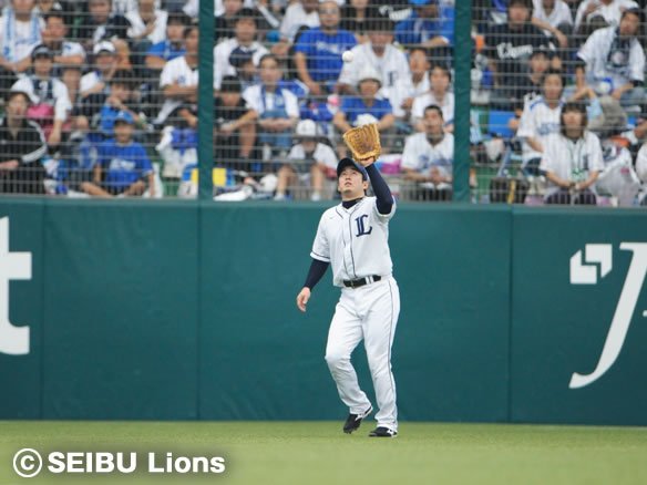 投手 涌井 1番 中村 左飛 2-2からの6球目、高めのチェンジアップを打ち上げさせ、ゆっくりと後退していったレフト・佐藤が落下点に入り、余裕を持ってキャッチ。 |